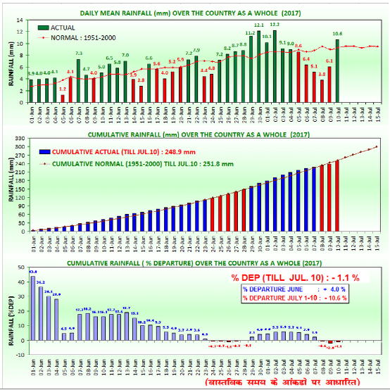 當(dāng)前印度季風(fēng)基本覆蓋全境,從最新的監(jiān)測數(shù)據(jù)來看,印度自西南季風(fēng)開始的降雨量還是同比減少了1.1%,而這也是屬于正常的范圍。由于降雨正常,對(duì)于印度的甘蔗生長有著較好的促進(jìn)作用。