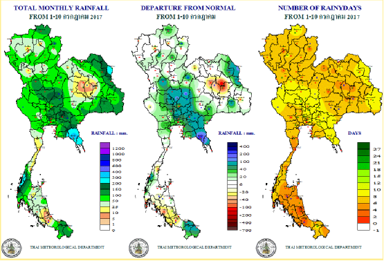 泰國氣象局對(duì)7月至9月的降雨趨勢判斷