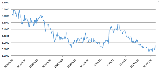 歷史上,原糖在每年的10-3月期間回落,多半是北半球壓榨過剩,但今年來看,印度產量可能低于2200萬噸,遠遠不夠本國消費,更不用說沖擊國際市場。那么從現在開始直至3月末之前,全球供應只能依靠泰國,但實際上,泰國今年并不會出現多大的增產,大概率是產量持平,而且還要供應緬甸這一中國主要的走私通道,因此,我們在3月份之前看不到市場的壓力因素。對于3月份之后,4月開始國際市場逐步由北半球供應轉到巴西,這也是空頭愿意做空的最大動力來看,因為已經有機構預計巴西17-18榨季繼續大幅增產至3700萬噸水平,而今年的產量是3530萬噸。巴西生產之后將體現壓力。但我們認為,市場一致期待的巴西壓力,至少要到6月份之后才能體現,而這還是在巴西雷亞爾不繼續升值以及巴西天氣不出問題的情況下。因此,綜上分析原糖在近期依然易漲難跌。