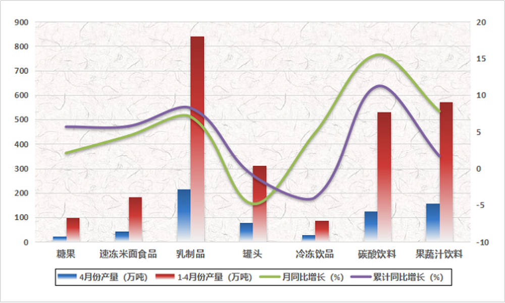 圖1 2018年1-4月份含糖食品產量