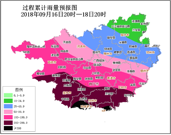 附圖2 9月16日20時-18日20時廣西雨量預報圖