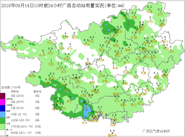 附圖4 2018年9月13日10時至14日10時廣西降雨分布圖