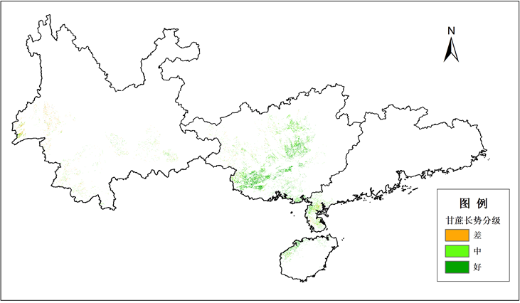 圖1 2018年11月上旬我國甘蔗長勢遙感監(jiān)測圖(FY-3B)