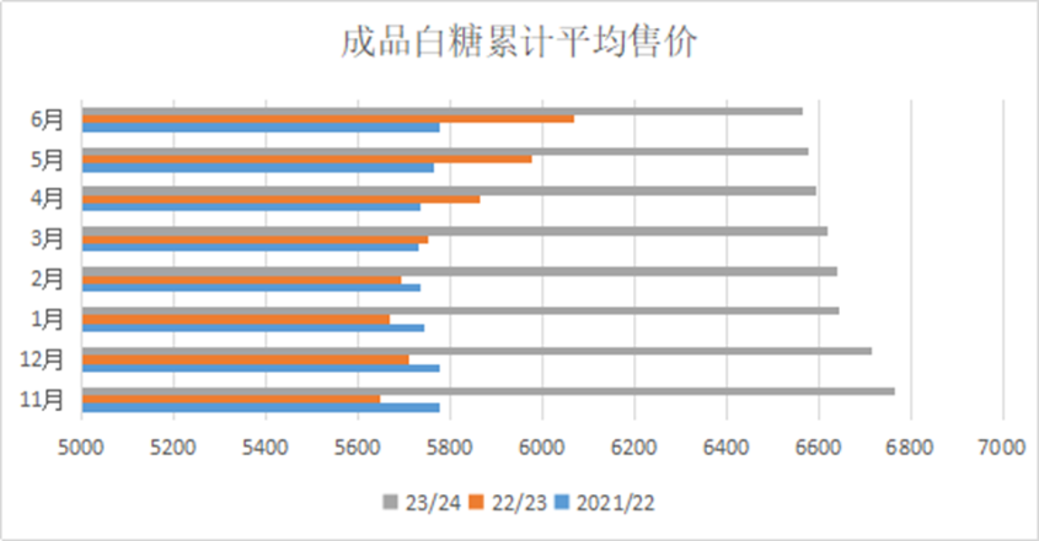 從月均銷售價(jià)格看,國(guó)產(chǎn)糖售價(jià)處于近三個(gè)榨季的高位,但從榨季開始至今,累計(jì)月均價(jià)出現(xiàn)小幅下調(diào)的趨勢(shì),隨著后期進(jìn)口糖源的上市補(bǔ)充,不排除月度均價(jià)繼續(xù)緩慢下滑。現(xiàn)榨季僅剩3個(gè)月,最終榨季均價(jià)預(yù)計(jì)維持在6400以上或左右。從價(jià)差看,廣西/云南價(jià)差在120元左右,比上月同期下跌了70元,加工/廣西價(jià)差在150元左右,同比上漲60元,因此上月云南單月銷量26.13萬(wàn)噸創(chuàng)下歷史第三高水平,銷售情況喜人去庫(kù)良好,加工糖的去庫(kù)存也很順利。當(dāng)前價(jià)差大概處于歷史的中值水平,這對(duì)各糖源均是較為理想的比價(jià)關(guān)系,各類糖源能相對(duì)均衡的去庫(kù)存。