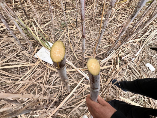 伶俐蔗區(qū)出現(xiàn)空心的甘蔗 但不普遍 大部分切口如右圖所示