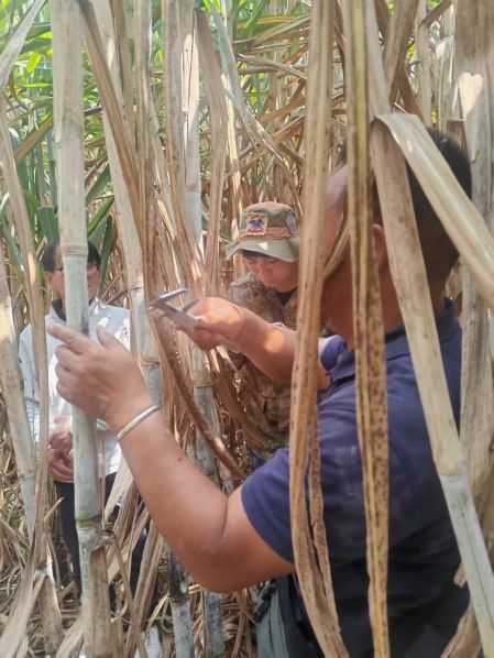 普洱測量地單根甘蔗三點錘度分別為:24.1%、23.3%、23%,從測量值看,甘蔗已經(jīng)成熟,需要盡快砍收,以免糖分損失。